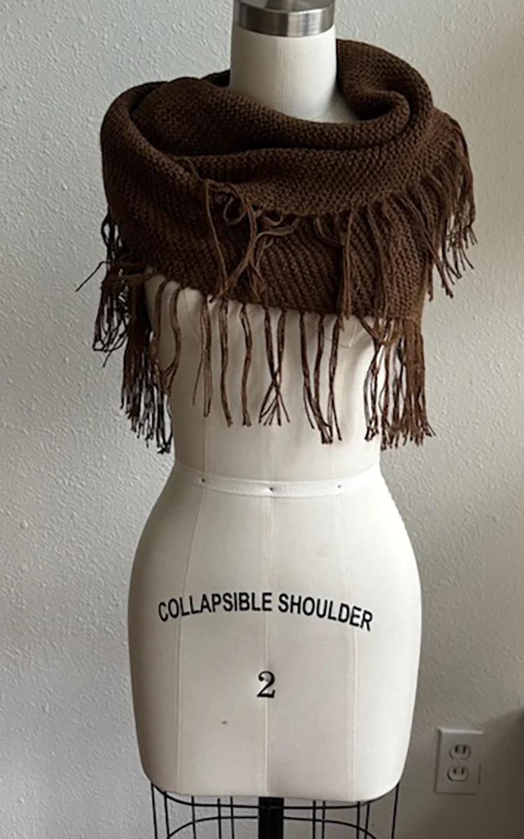 This is actually the very first piece I created for women back in 2011. The concept was a beautifully hand knitted shawl in soft alpaca that was thin enough to drape over my shoulders while I sewed or wrap as a scarf to beat the winter chill. I love this piece. It’s simple and timeless...