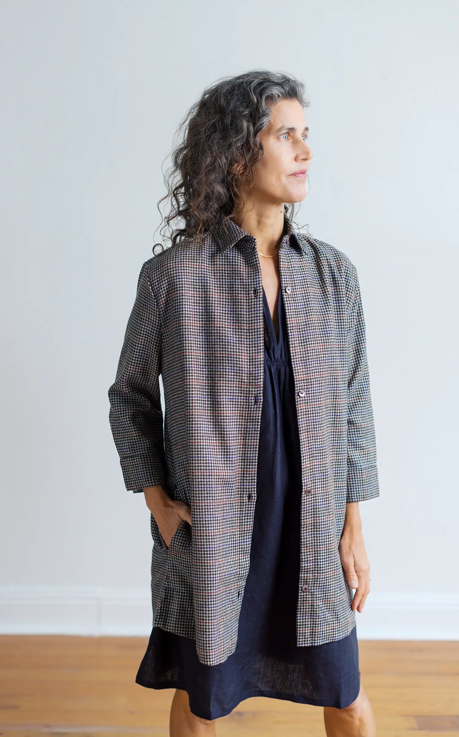 Field Jacket in Houndstooth Wool with Black Linen Lining